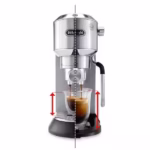 The Dedica Arte manual coffee machine with a shiny metal matt finish adds extra style to the iconic and distinctive Dedica design. Compact but powerful is the perfect complement to your kitchen bench for rich espressos with no fuss, texture silky microfoam for your favourite milk-based drinks and enjoy ease of use and convenience.