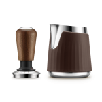 The Force Gauge self-leveling tamper provides consistent pressure with minimal effort. The Pro Control Jug™, features a handleless design with a pro spout that gives you full control to create more precise latte art. Compatible with 54mm Breville Espresso Portafilters.