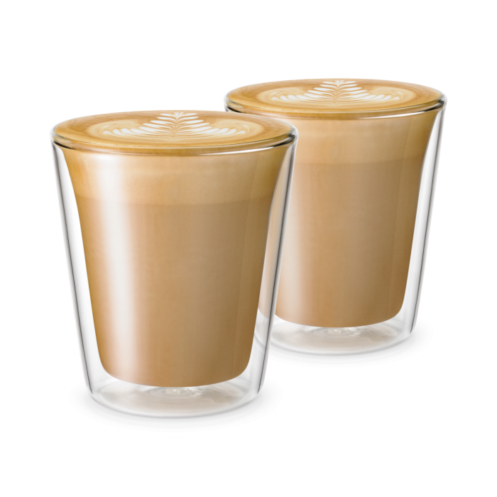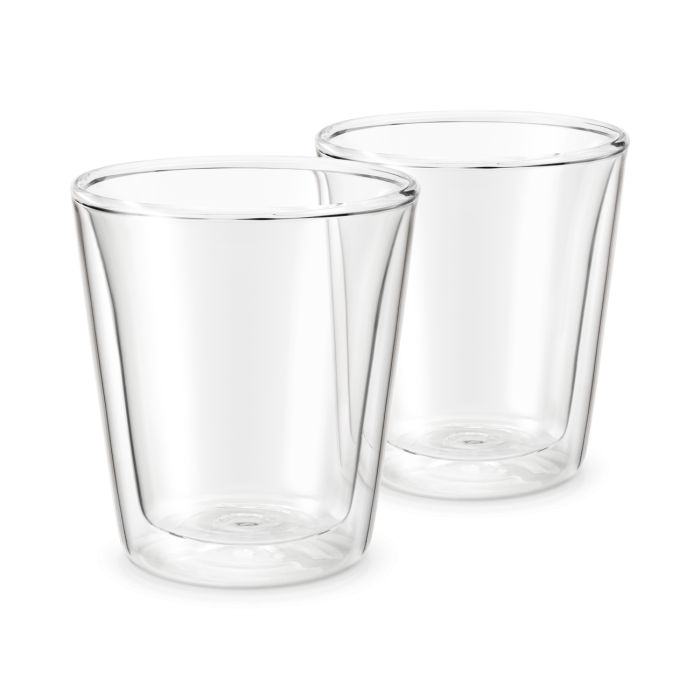 The 200ml Latte Duo Bodum glasses are a stylish addition to your coffee ritual. The double wall design crafted from borosilicate keeps hot drinks hot and and cold drinks cold for longer.